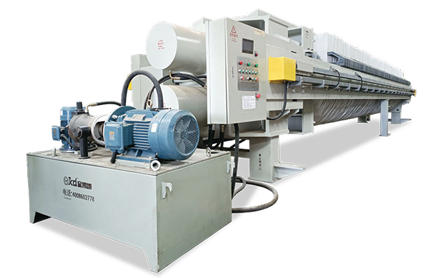 高壓壓濾機是集機、電、液于一體的固液分離機械設備,它主要由五大部分組成:機架部分、自動拉板部分、過濾部分、液壓部分和電器控制部分。可根據需求增加接液盤、翻板、儲泥斗、水洗系統、濾布曲張架、氣卸料等。其結構較簡單,操作容易,運行穩定,保養方便;過濾面積選擇范圍靈活,占地少;對物料適應性強, 效率高,含水率低,適用于各行各業物料脫水處理。現已應用于市政、礦山、紙業等多個大型固廢脫水處理行業。設備使用簡單,操作、維護方便,是理想的固液分離設備。專利技術(專利類型:發明,專利號:CN104260402A),圓形濾板,濾板面結構自主知識產權設計,使用壽命長,密封性強,不噴漿,耐高壓,過濾效果好,濾餅含固高。