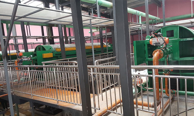 3、創(chuàng)新壓榨機(jī)構(gòu):區(qū)別于常規(guī)隔膜壓濾結(jié)構(gòu),采用專利彈簧壓榨結(jié)構(gòu),壓榨速度快,壽命長,解決了隔膜濾板壽命低,膜片易壞的難題,壓榨時間縮短一倍以上。在工藝上取消了壓榨泵、壓榨水罐及相關(guān)配套閥門、儀表、管道,簡化工藝的同時節(jié)省了設(shè)備投資成本。